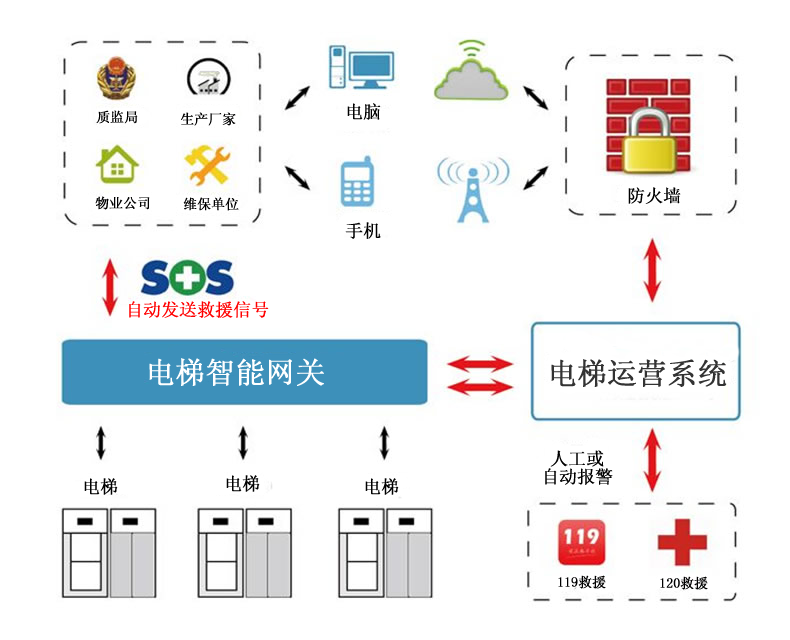 以yth游艇会yth206工业智能网关为核心,顺利获得串行/网口通信获取电梯控制器数据并进行本地计算分析后,把这些数据顺利获得工业智能网关有线或无线网络安全可靠地传输到后台服务器,yth游艇会yth206工业智能网关还具有短信发送和接收功能,可将电梯故障信息发送到维保人员、物业公司人员、应急处置服务平台人员的手机上,出现紧急情况,实现第一时间报警。电梯运行安全物联监控平台,顺利获得调取后台服务器的数据,起到了统一管理、统一指挥、统一调度的功能。