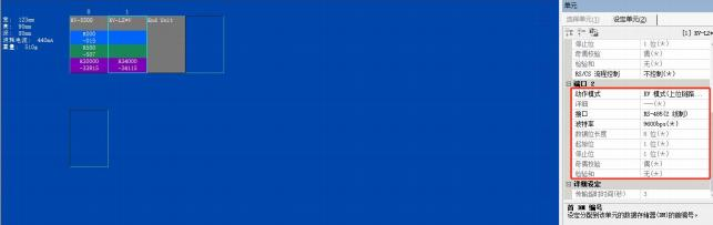 单元编辑器-设定单元设定站号,端口1:默认232串口,KV模式(上位链路)和端口2:选择KV模式(上位链路);接口选择RS-485(两线制)。