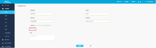 注意:服务类型为”指令下发”时,服务标识命名规则为:属性标识_cmd。