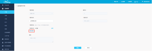 服务类型:分为”数据上报”、”事件上报”、”指令下发”以及”指令下发响应”四种。