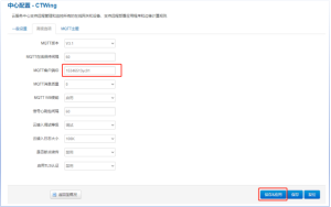 补全参数,连接用户名为天翼物联网平台的登陆账号,连接密码和客户端ID的获取方法在本文档中一、(四)处查看,填写完点击保存&应用。