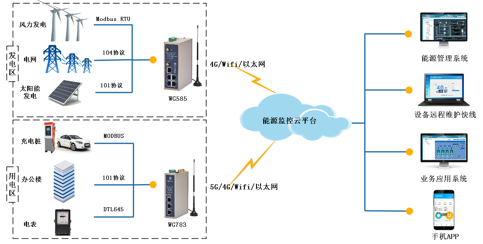 顺利获得yth游艇会yth206的两化融合和边缘计算网关,对发电系统运行情况、发电量进行监测,对用电情况进行采集和汇总,从而对电力消耗做出智能分析和智能控制,达到节能减耗的目的;并且顺利获得告警功能、预警机制及时发现设备的异常情况,及时进行检查维护,防止意外事故发生。对整个微网的全面监控和数据分析,可实现从发电、配电、售电整个流程的运营维护和合理调度及决策。