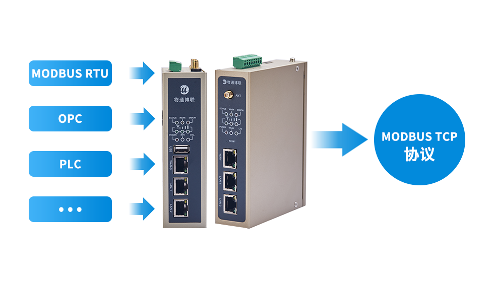 支持将各种协议如ModbusRTU、OPC、PLC协议转换为ModbusTCP协议