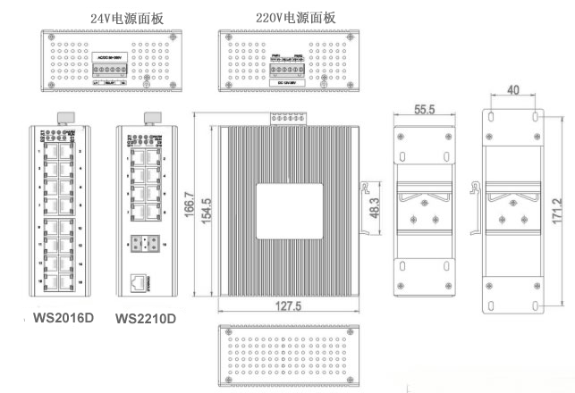 | 接口 | 16个10/100Base-T(X)自适应以太网RJ45接口 |