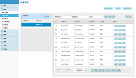数采配置(设备信息+变量参数)完成后,重启采集程序并生效配置即可在:数采信息---变量数据---设备名称 中看到采集上来的数据。