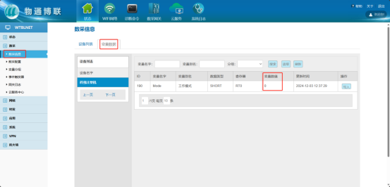 查看数采信息 等待右下角弹出成功提示框后,点击“数采信息”->“变量数据”,即可在“变量值”一列查看采集结果。