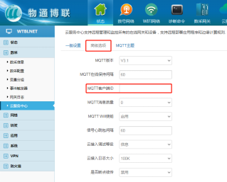 在高级选项中配置MQTT客户端ID连接参数,填写完毕后保存并应用。