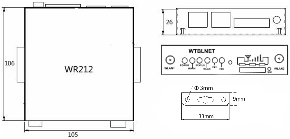 | 示例 | WR212-LL07-232 (两网口,4G CAT4全网通,232串口) WR212-LQ2S-485 (两网口,4G CAT1全网通,485串口) WR212-LL07-WLAN-485 (两网口,4G CAT4 全网通,2.4G WIFI,485串口) |