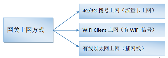 1、网关联网配置 进入网关WEB管理界面(http://192.168.2.1/)设置联网方式,可选WIFI网络、3/4G网络(需要在网关通电前插入手机SIM卡,默认已开启3/4G网络)、WAN外网,三者只能选一个。