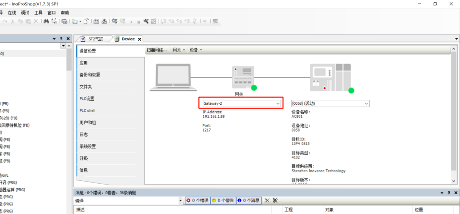 4、汇川InoProShop配置 1、建立通道后,打开InoProShop ,根据连接的AM600型号全称,选择工程型号。