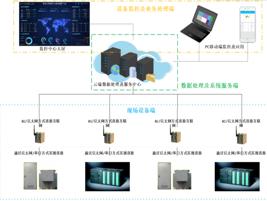 解决方案 卫浴工厂包含有涂布机、封箱机、打包机、晾干线等设备接入到yth游艇会yth206工业智能网关和工业数采终端,进行实时数据采集并顺利获得以太网上传到工厂服务器上和接入工厂MES系统,进而在监控平台实现对设备运行状态、生产信息、产量速度、能耗数据的可视化监控与数据分析。