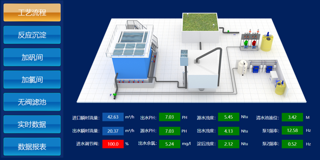 远程控制设备启停,实现水厂信息化、自动化、智能化管理。